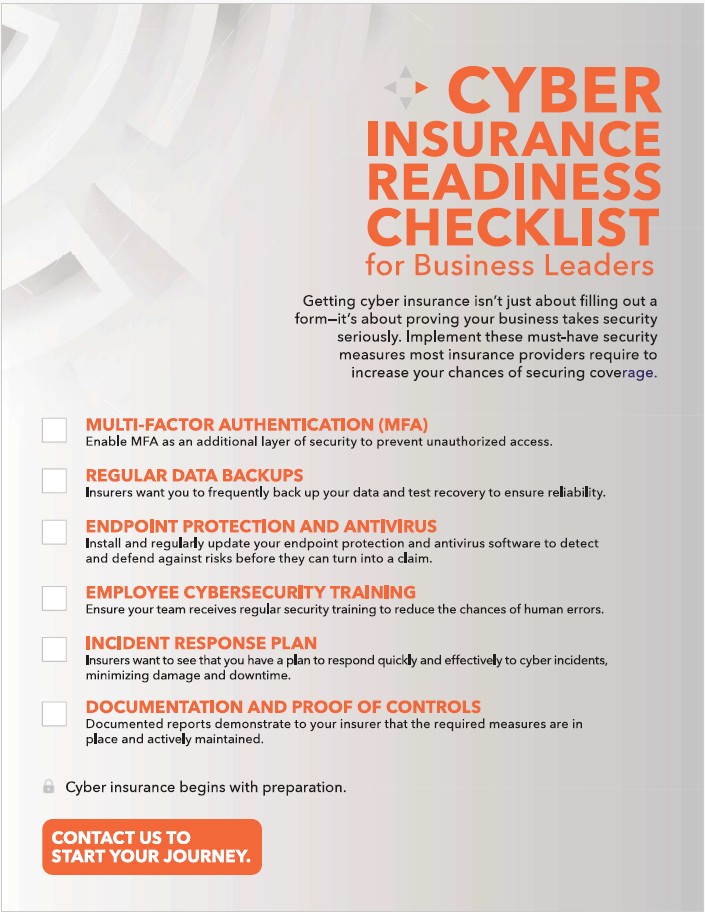 Cyber insurance preparation requires expertise and attention to detail. The difference between businesses that navigate the application process smoothly and those that struggle often comes down to having an IT partner who understands both cybersecurity and business continuity requirements.